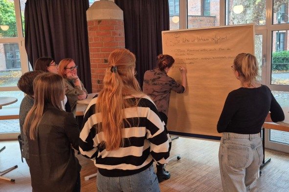 Nach einer stärkenden Mittagspause mit leckerem Fingerfood stand Teamarbeit auf dem Programm. In kleinen Gruppen bearbeiteten die Teilnehmenden fiktive Fallbeispiele aus dem Mentoring-Alltag. Ziel war es, Herausforderungen zu reflektieren, Lösungsansätze zu entwickeln und voneinander zu lernen. Die Ergebnisse wurden anschließend im Plenum vorgestellt und gemeinsam diskutiert – ein wertvoller Raum, um Erfahrungen zu teilen und gegenseitige Unterstützung zu fördern.